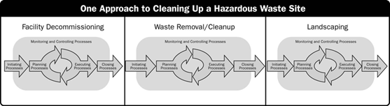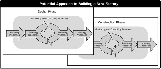 ب) تحقق خروجی های اصلی و اهداف هر فاز نیازمند کنترل ها و یا فرآیندهای منحصر به فرد برای فازها و فعالیتهای می باشد .تکرار فرآیندها مطابق با گروههای پنجگانه فرآیندی (آغازین ، برنامه ریزی ، اجرا ، منیتور و کنترل و خاتمه)سبب ایجاد درجه بیشتری از کنترل و تعریف مرز فازها می شود.