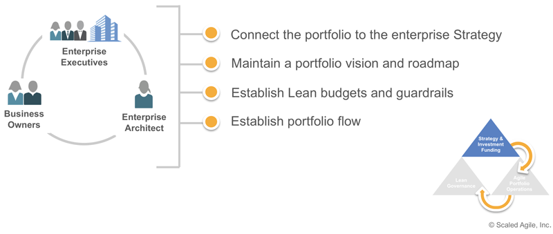 مشارکت بین استراتژی و بودجه سرمایه گذاری، (شکل 3)نیاز به تعامل فعال مدیران اجرایی،صاحبان کسب و کار، ذینفعان پورتفولیو، تکنسین ها، و معماران سازمانی،دارد.هر مسئولیت، در ادامه شرح داده میشود.