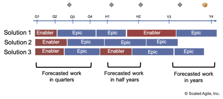 با این سه داده، شخص میتواند چه اتفاقی پیش می آید، اگر سناریوها مشخص کنند، چه وقت هر اپیک الویت بندی شده ای، میتواند بطوربالقوه عرضه شود.